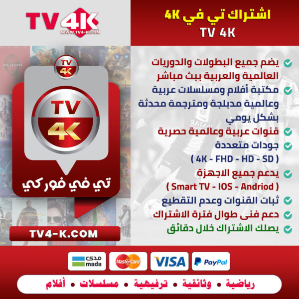 تخيل أنك تجلس مرتاحًا على أريكتك، فنجان قهوتك بجانبك، والشاشة تضيء بألوان زاهية، وكأنك في قلب الحدث. مع اشتراك تي في فور كي بلس، هذا الحلم يصبح حقيقة.
